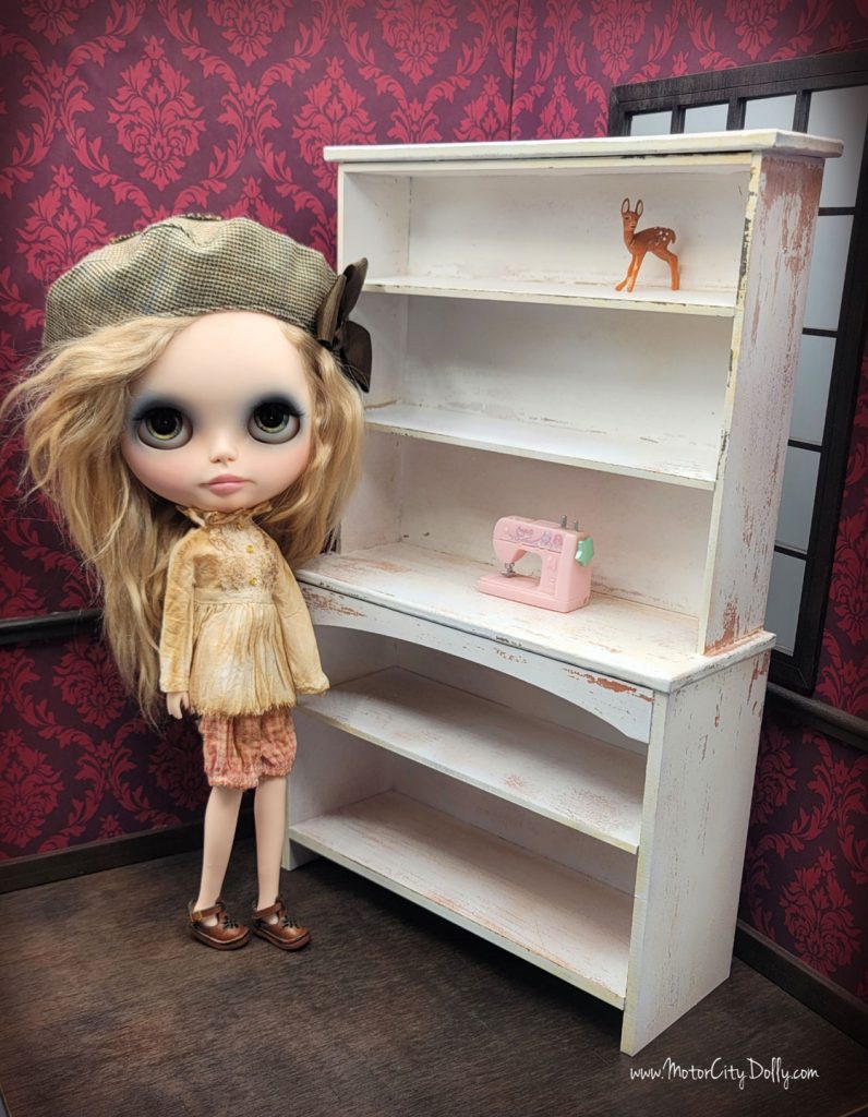 I am super excited to be making 1/6 scale doll furniture for Blythe and other 11″ fashion dolls now. This Sunday, May 2, I’ll be offering several versions of these completed hutches, as well as DIY kits with pre-cut wood and instructions to build the hutch and decorate it your way. The shop update will be at 7pm Eastern.