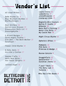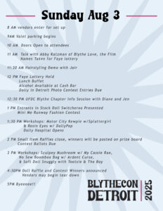 Blythecon Detroit is finally almost here! Here is the schedule for our Sunday event, as well as the final vendor list and layout! Can’t wait to see you Sunday at the Masonic Temple!