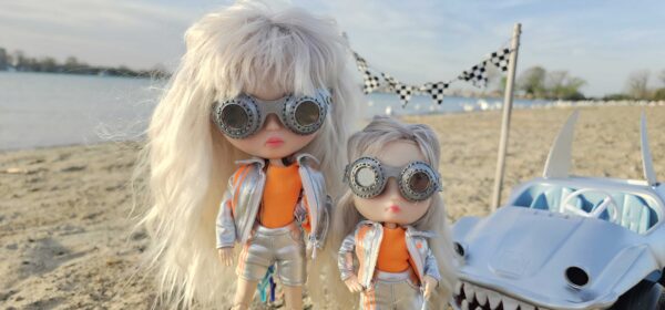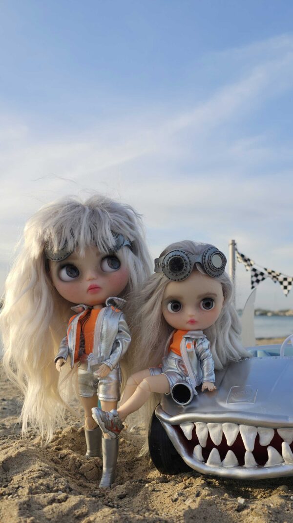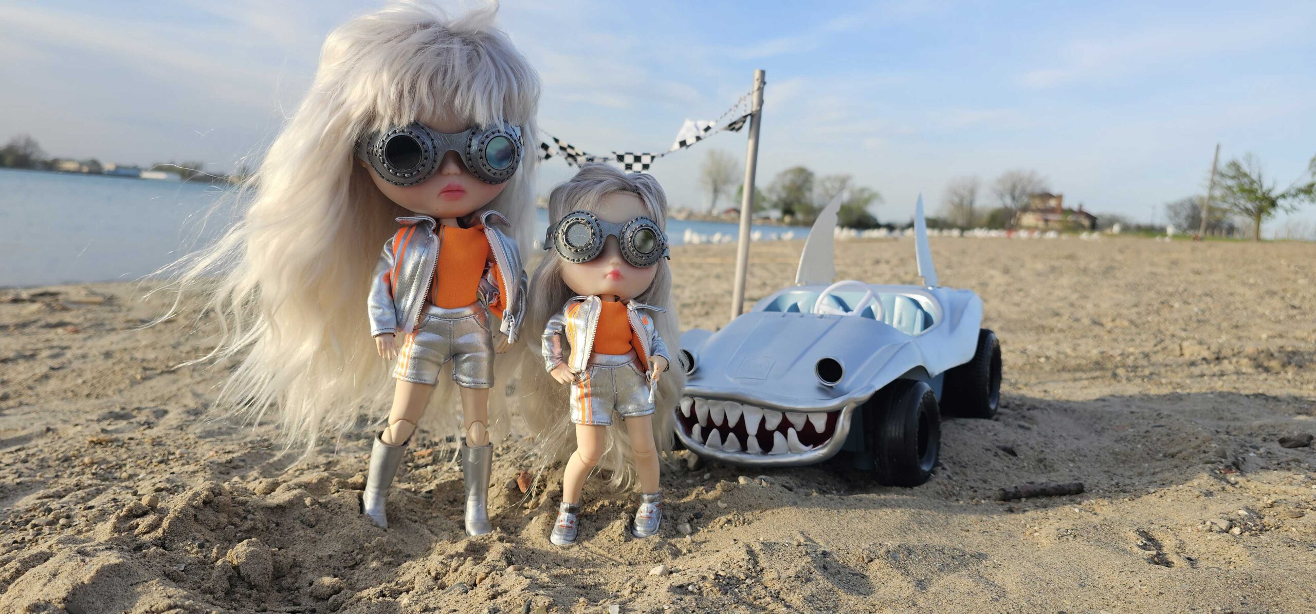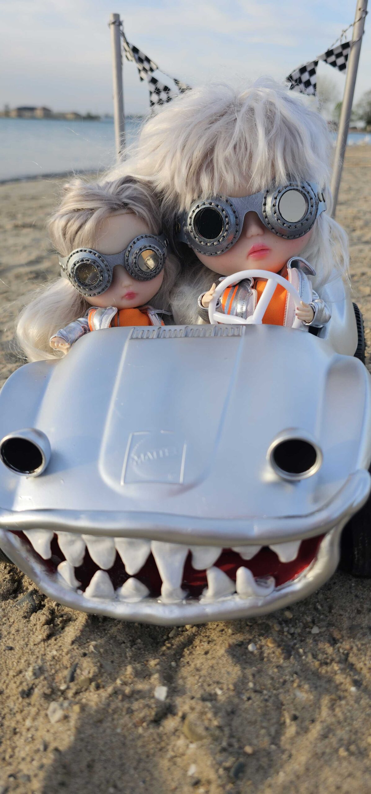 The Motor City Dolly Racing Team.,Frankie & Annette, are beautiful, bold, and deathly competitive. Frankie takes out fellow racers without batting an icy blue eye, while Annette navigates the wide open beach. You’d better be ready to run hard to keep up with these two!