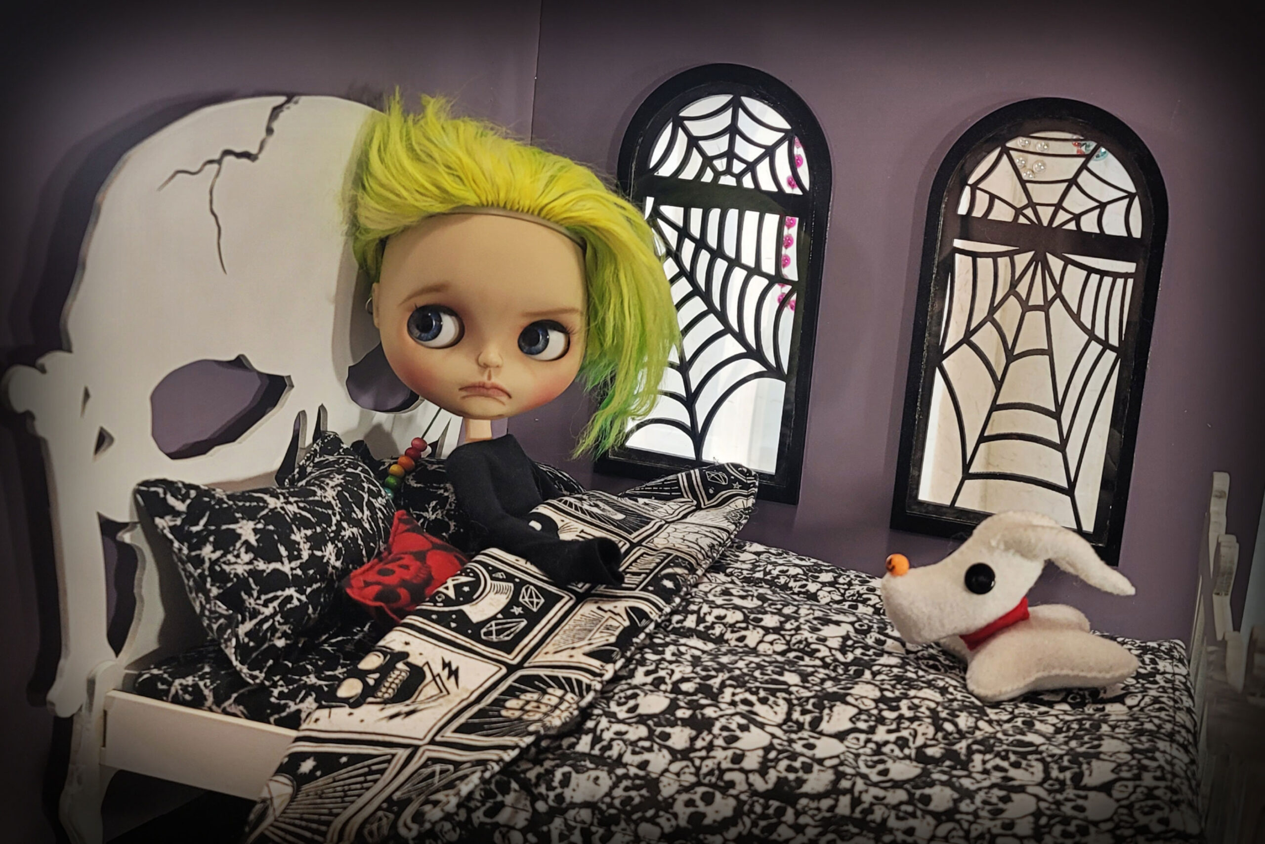 FYI this bed is HUGE as it fits two Blythes and their giant heads.