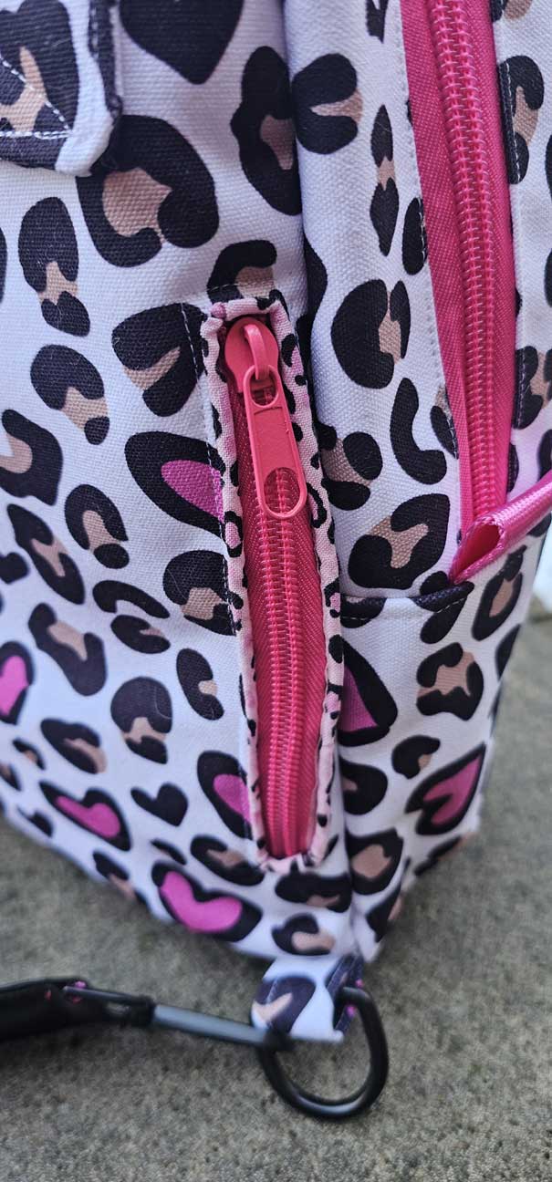 Three zip pockets—one on the front of the bag that I like to place my keys and chapstick in, one on the back of the bag that is great for easy access for your phone, and a security pocket inside the back compartment for your wallet.