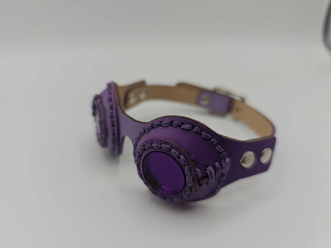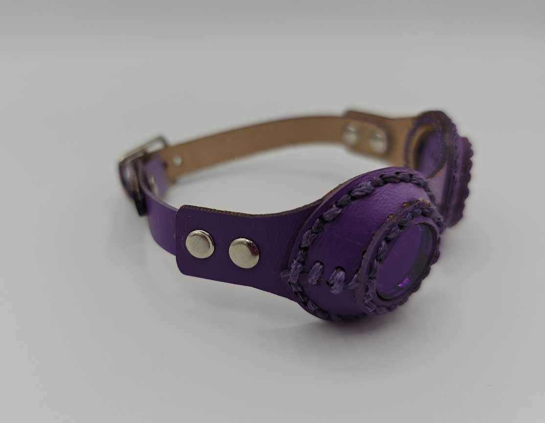 Your Middie Blythe, Faye or Labubu will look super cool in these leather goggles while motorcycling, flying, or being a snow sports star! Each pair is hand dyed and hand stitched from genuine leather, with metal hardware and acrylic lenses. A buckle allows them to easily be adjusted to fit over hats or varying hair thickness.